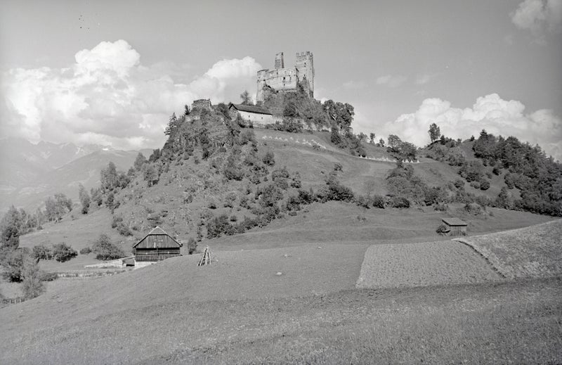 Il Castello di San Michele (in tedesco Michelsburg o, più correttamente, St. Michaelsburg) fu costruito come feudo dei vescovi di Bressanone nel tardo XII secolo, probabilmente dai conti di Andechs. Dopo la loro deposizione, nel 1210 fu ceduto ai conti del Tirolo e infine ai conti di Tirolo-Gorizia. Dal XIII secolo il castello era anche sede dell’omonimo giudizio, la cui gestione fu inizialmente affidata a persone di condizione servile (cosiddetti ministeriali); dal XIV secolo in poi l’amministrazione del castello e del tribunale fu affidata ai suoi stessi guardiani, che a loro volta nominavano i giudici o svolgevano in prima persona il ruolo di capitano del castello e di giudice. Nel 1500 l’eredità dei conti di Gorizia passò per successione agli Asburgo e fu unita territorialmente alla Contea del Tirolo. Pochi anni dopo, tuttavia, Massimiliano I diede in pegno al vescovo di Bressanone i castelli di San Michele, Schöneck, di Villa Ottone e Heinfels in cambio di 24.000 fiorini. Ben presto vi furono nuovi cambiamenti: il castello e il giudizio territoriale di Michelsburg, che all’epoca aveva già la propria sede presso un palazzo di giustizia a S. Lorenzo, subirono nei secoli XVI e XVII numerosi passaggi di proprietà; per periodi il castello tornò sotto l’egida del principe territoriale, dato in feudo a diverse famiglie nobiliari, per qualche tempo fu anche utilizzato dall’istituto religioso femminile di Hall, ricadde quindi sotto la proprietà nel monastero di Bressanone e tornò infine al principe territoriale del Tirolo. Nel 1678 il castello e il giudizio furono ceduti in pegno ai baroni di Künigl e nel 1810 i giudizi di Michelsburg (Castello S. Michele), Schöneck, Brunico e Sonnenburg (Castel Badia) furono uniti sotto il dominio bavarese per formare il giudizio territoriale di Brunico. Ritornato sotto il dominio asburgico, i diritti feudali dei conti Künigl furono definitivamente riscattati nel 1827, il giudizio entrò a far parte dell’amministrazione statale e fu inserito permanentemente nel giudizio territoriale di Brunico, mentre il castello, sostanzialmente privo di funzioni, divenne proprietà dei Künigl, che lo vendettero definitivamente nel 1969. All’inizio del XX secolo, il Castello di San Michele, qui in una fotografia di Mario Geat del 1941, era già fortemente segnato dal degrado e alcune sue parti erano crollate. Solo negli anni Sessanta sono state avviate le prime misure di messa in sicurezza, seguite negli anni Novanta da ampi interventi di restauro da parte dell’attuale proprietario, che hanno conferito al castello il suo antico e imponente splendore.