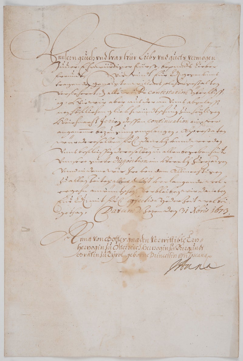 L’arciduchessa Anna (de'Medici) ringrazia il principe vescovo Sigismondo Alfonso di Thun per gli auguri natalizi