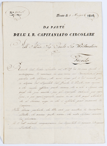 La designazione del conte Pio Fedele Wolkenstein a commissario per l’elezione dei deputati presso il grande congresso (1816)