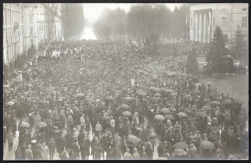 Alla fine di ottobre del 1918 la Monarchia asburgica era ormai prossima allo sfacelo e i paesi della corona di Boemia, assieme ai territori abitati dagli slovacchi, si erano dichiarati indipendenti proclamando la Repubblica Cecoslovacca. Il 1° novembre si costituiva il Consiglio Nazionale Tirolese, concepito come organo del nuovo stato dell’Austria Tedesca. Al più tardi colla rivendicazione da parte del Regno d’Italia, poco dopo la fine delle operazioni militari, del territorio a sud del Brennero, così come coll’occupazione temporanea da parte dello stesso addirittura di Innsbruck e la susseguente proibizione di qualsiasi comunicazione fra il Tirolo del Sud e quello del Nord, si palesò che per la situazione fosse più complessa di quanto si fosse immaginato. Mentre il Vorarlberg si separava definitivamente dal Tirolo e il governo dell’Austria Tedesca auspicava l’annessione all’Impero Tedesco, in Tirolo si contemplava la possibilità di costituirsi in Stato indipendente e di considerare l’appartenenza all’Austria Tedesca come soluzione transitoria. L’occupazione italiana della porzione meridionale del Tirolo venne condannata a Innsbruck come atto illegittimo, dal momento che contrastava coi principi dettati nel gennaio del 1918 dal presidente americano Woodrow Wilson per il raggiungimento di una pace giusta in Europa, in particolare con il nono (A re-adjustment of the frontiers of Italy should be effected along clearly recognizable lines of nationality). In questo contesto il consiglio nazionale tirolese, al fine di preservare l’unità territoriale del Tirolo tedesco da Kufstein a Salorno, inviò diverse note di protesta e memorandum alle rappresentanze diplomatiche che stavano definendo il trattato di pace di Saint-Germain. Nei primi mesi del 1919 a Vienna, Innsbruck e anche a Lienz si tenevano manifestazioni in favore del Tirolo meridionale di lingua tedesca, che nel Paese trovarono naturalmente grande partecipazione. Il 16 marzo 1919, una domenica fredda e piovosa, una grande folla si riversava nel Rennweg di Innsbruck, sulla piazza posta fra la Hofburg e lo Stadttheater (oggi Landestheater) per dimostrare contro la divisione del Tirolo. Diversi politici presero la parola per perorare il mantenimento dell’unità del Tirolo tedesco, come il Dr. Eduard Erler, il barone Sternbach, vicecapitano provinciale, il Dr. Pusch e il Dr. Gruener, così come il vicesindaco di Innsbruck Rapoldi. Anche Fra Willram, poeta, predicatore e arringatore assai noto, tenne un discorso contro la divisione del Paese. Alla fine della manifestazione i rappresentati del Governo provinciale lessero una risoluzione con cui per i tedeschi e i ladini che abitavano i territori occupati dall’Italia si reclamava il diritto all’autodeterminazione. A partire dalla primavera del 1919 si tennero manifestazioni di massa in tutti i centri maggiori per protestare contro la divisione del Tirolo, ma senza successo. La giovane Repubblica Austriaca non aveva sufficiente peso per potersi imporre al tavolo di pace di Saint-Germain contro le rivendicazioni dell’Italia, che apparteneva al novero delle potenze vincitrici e pretendeva il rispetto del patto di Londra del 26 aprile 1915. Il 10 ottobre 1920 l’annessione del Tirolo meridionale al Regno d’Italia entrò in vigore ufficialmente e i deputati sudtirolesi alla Dieta di Innsbruck abbandonarono per sempre quell’assemblea. Le proteste nel Tirolo settentrionale tuttavia non cessarono. Ogni anno, il 10 ottobre, per ricordare la spaccatura del Paese, ancora a lungo si celebrarono sedute commemorative della Dieta stessa, manifestazioni, cerimonie di lutto e messe funebri.