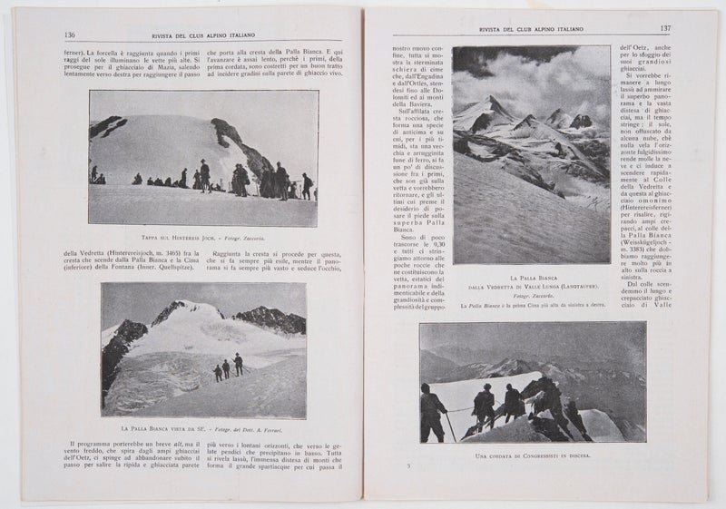 Tre giorni dopo la firma del trattato di pace di Saint-Germain, nel settembre del 1919 a Trento, il 43o Congresso del Club Alpino Italiano si trovava ad essere interamente allʼinsegna delle cosiddette nuove Province: nella sala della Società Filarmonica lʼassemblea generale ebbe inizio con un discorso dʼapertura patriottico del Presidente Basilio Calderini. Dopo il pranzo di gala al Grand Hôtel i partecipanti si recarono al Castello del Buonconsiglio per commemorare lʼesecuzione di Cesare Battisti, Fabio Filzi e Damiano Chiesa con lʼapposizione di una targa commemorativa in bronzo. Durante la sera dello stesso giorno gli alpinisti vennero condotti a Merano con un treno speciale, dove furono accolti dal generale De Marchi, dal colonello Strobel, dal Commissario civile Negri e da altre autorità. Seguì una cena allʼHôtel Savoy. Durante la mattina del giorno successivo i partecipanti raggiunsero la Val Venosta con un convoglio di autocarri e a Spondigna si divisero in due gruppi. Il primo si recò a Tarces, salendo fino a Mazia al rifugio Höller (lʼodierno rifugio Oberettes), per scalare la Palla Bianca il mattino del giorno successivo. Nel frattempo, il secondo gruppo, composto anche da cinque giovani alpiniste, si avviò a Gomagoi per poi incamminarsi verso Solda. La mattina successiva una parte del gruppo, ben 56 persone suddivise in dodici cordate, si avventurò sulla Cima Vertana, mentre i partecipanti rimasti intrapresero unʼescursione al rifugio Serristori (Düsseldorferhütte). Nella mattinata del 16 settembre i due gruppi si riunirono al Passo Resia, dove venne inaugurata una targa del CAI al nuovo confine di Stato. In seguito gli alpinisti ritornarono a Merano. Il giorno seguente fu la volta di Vipiteno, Colle Isarco e Brennero, dove, come in precedenza, venne affissa una targa in bronzo in presenza di militari. Dopo un successivo pernottamento a Bressanone terminò il soggiorno in Alto Adige e gli escursionisti salirono a bordo di un treno, che li portò a Venezia. Da lì proseguirono in nave fino a Trieste. Nelle Grotte di Postumia (oggi Slovenia) si concluse infine lʼescursione.