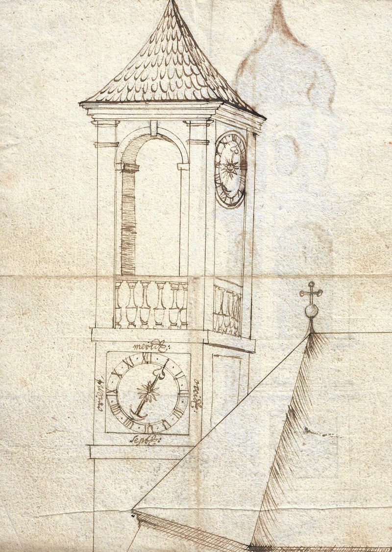 Non sorprende quindi che gli abitanti di Piazza della Trinità a Bolzano, l’attuale Piazza Municipio, volessero far costruire nel 1675 presso l’omonima chiesa un nuovo campanile con orologio, che fosse visibile e leggibile anche dai Portici. Tuttavia, la raccolta dei fondi era risultata insufficiente e i cittadini chiesero pertanto un contributo al Magistrato mercantile, sottolineando che un tale orologio sarebbe stato d’utilità generale e vantaggioso anche per lo svolgimento sotto i Portici delle fiere di Bolzano – due disegni a penna dovevano illustrare il possibile aspetto del campanile.