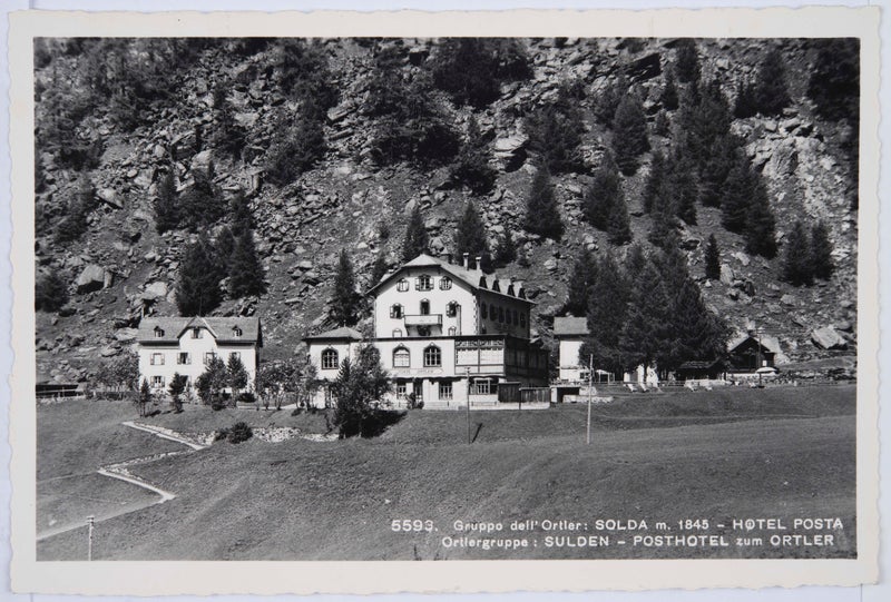 La domenica d’argento del 1933 Franz Angerer (1880-1946) salì sulla sua Fiat 501 per recarsi, nonostante il freddo gelido e la neve, dalla sua residenza invernale di Merano all’innevata Solda, presso il cui Hotel Post sull’Ortles regnava l’immobilità. Nel 1904 Franz Angerer aveva rilevato l’”Ortler Hof” e relativa depandance, aperto dal padre Franz senior nel 1871, ribattezzandolo “Posthotel zum Ortler” dato che presso l’hotel era stata installata una stazione postale e telegrafica. L’intraprendente albergatore divenne così il noto “Postmaster Angerer” che, insieme alla moglie Franziska (Fanny) Aschberger di Merano, gestì con successo e ampliò costantemente l’albergo: negli anni Trenta la struttura ricettiva disponeva di 50 camere con 80 posti letto, di un ristorante e di una sala da ballo, oltre che di una propria guida alpina, degli uffici postale e telegrafico e del telefono, di un fotografo, di un parrucchiere, di una propria macelleria e di una sartoria.